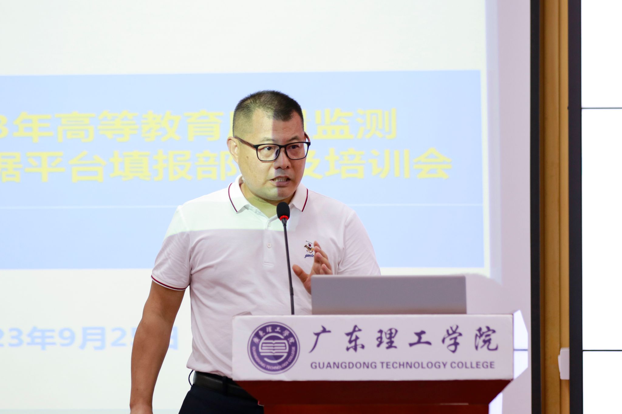 9月25日,我校在42栋101学术报告厅召开2023年高等教育质量监测国家数据平台填报部署与培训会,学校相关领导、职能部门及二级学院(部)负责人与填报人参加了会议,会议由教学质量监测与评估处处长陈东旭主持。