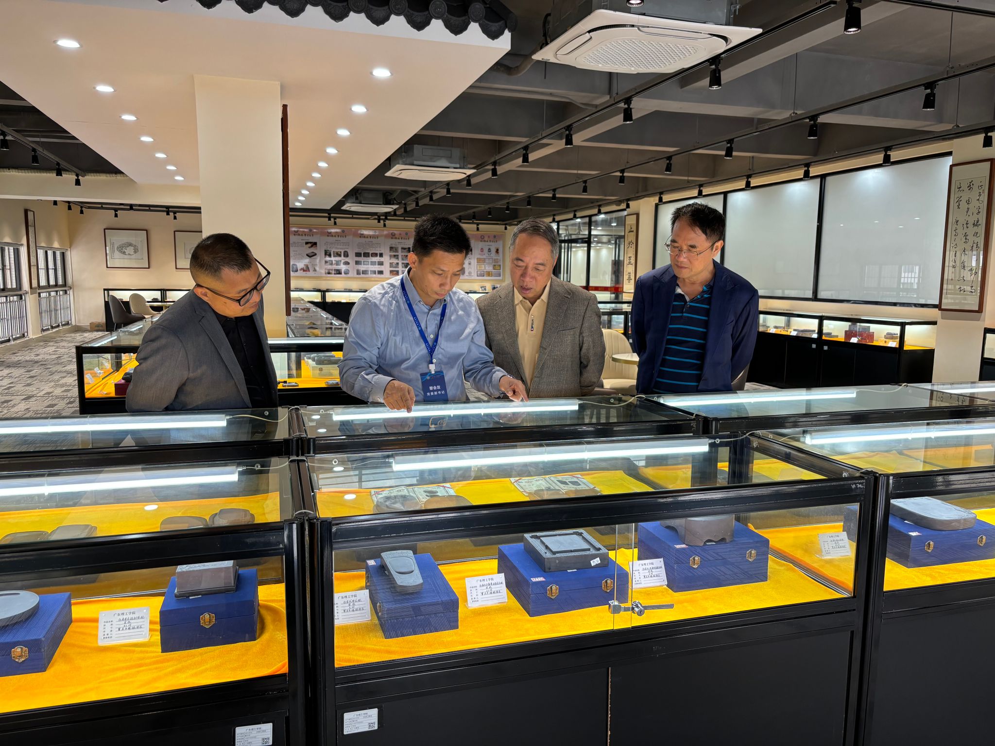 10月23日,学校评估督导甘筱青教授与外国语学院桑龙扬教授、教学质量监测与评估处处长陈东旭一行,前往鼎湖校区端砚馆进行调研。校党委副书记黎会友介绍端砚馆的情况,并引领观赏了端砚馆中陈列的由端砚大师及本校学生制作的各类端砚。