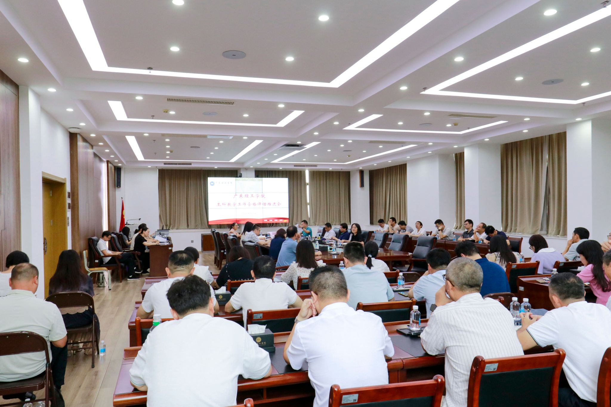 7月11日上午,学校在高要校区综合楼12楼会议室召开本学期第8次本科教学工作合格评估推进会。在校的全体校领导、党群及行政管理服务部门主要负责人、教辅单位主要负责人、教学单位党政领导班子、教学质量监测与评估中心全体成员参加会议,会议由学校常务副校长柴维斯主持。